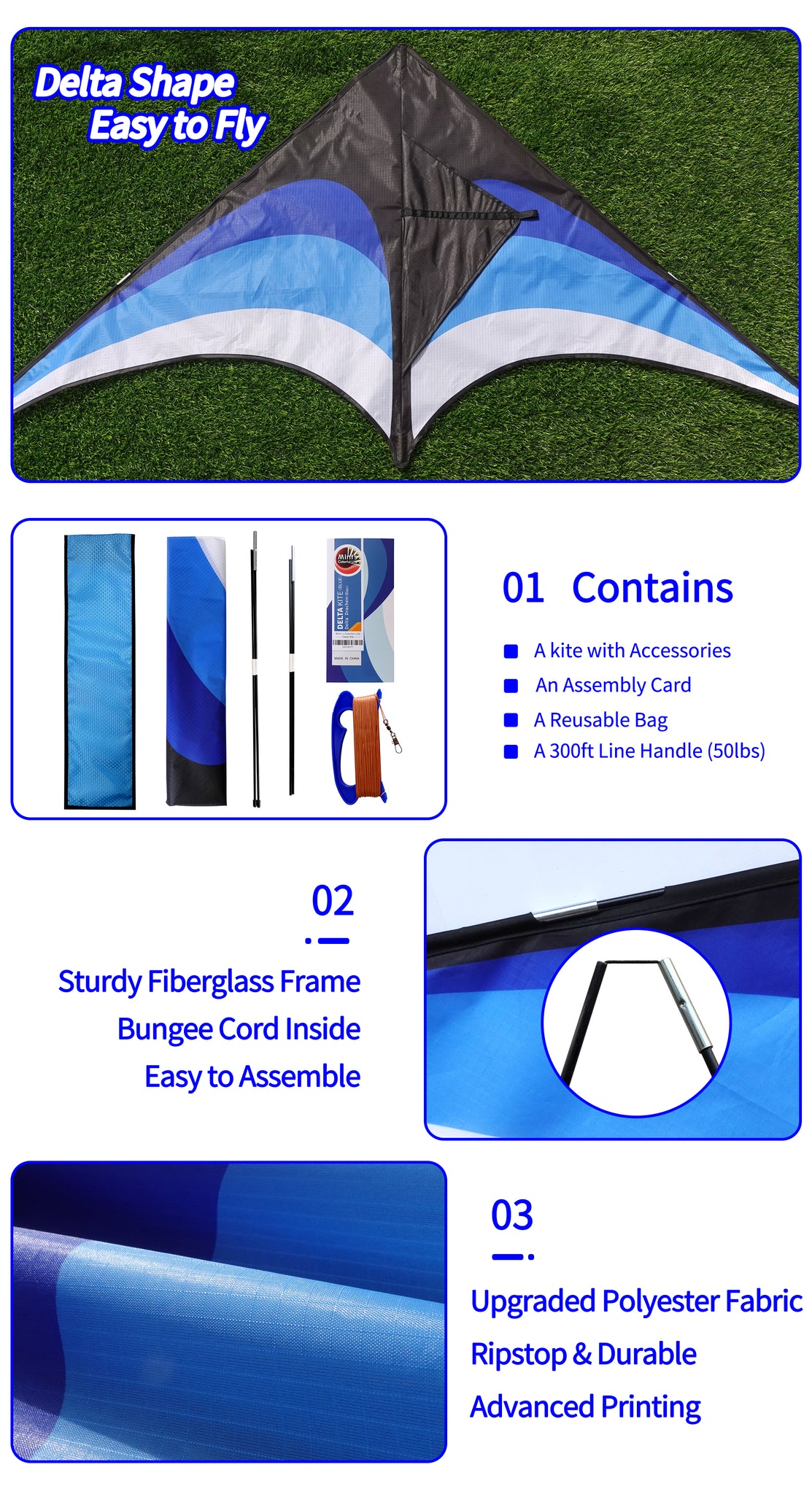 | Name: Blue Delta Kite | Material: Polyester; Fiberglass |