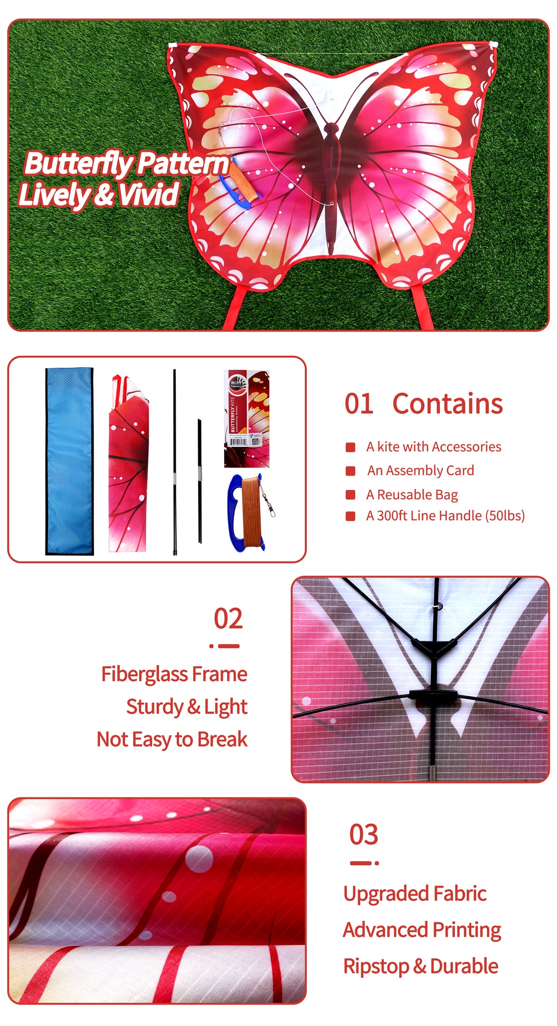 - Easy to Assemble and Fly As we know, kite with butterfly shape is not as easy to fly and assemble as those delta or diamond kite. After updating the structure, it is easier to assemble and fly.