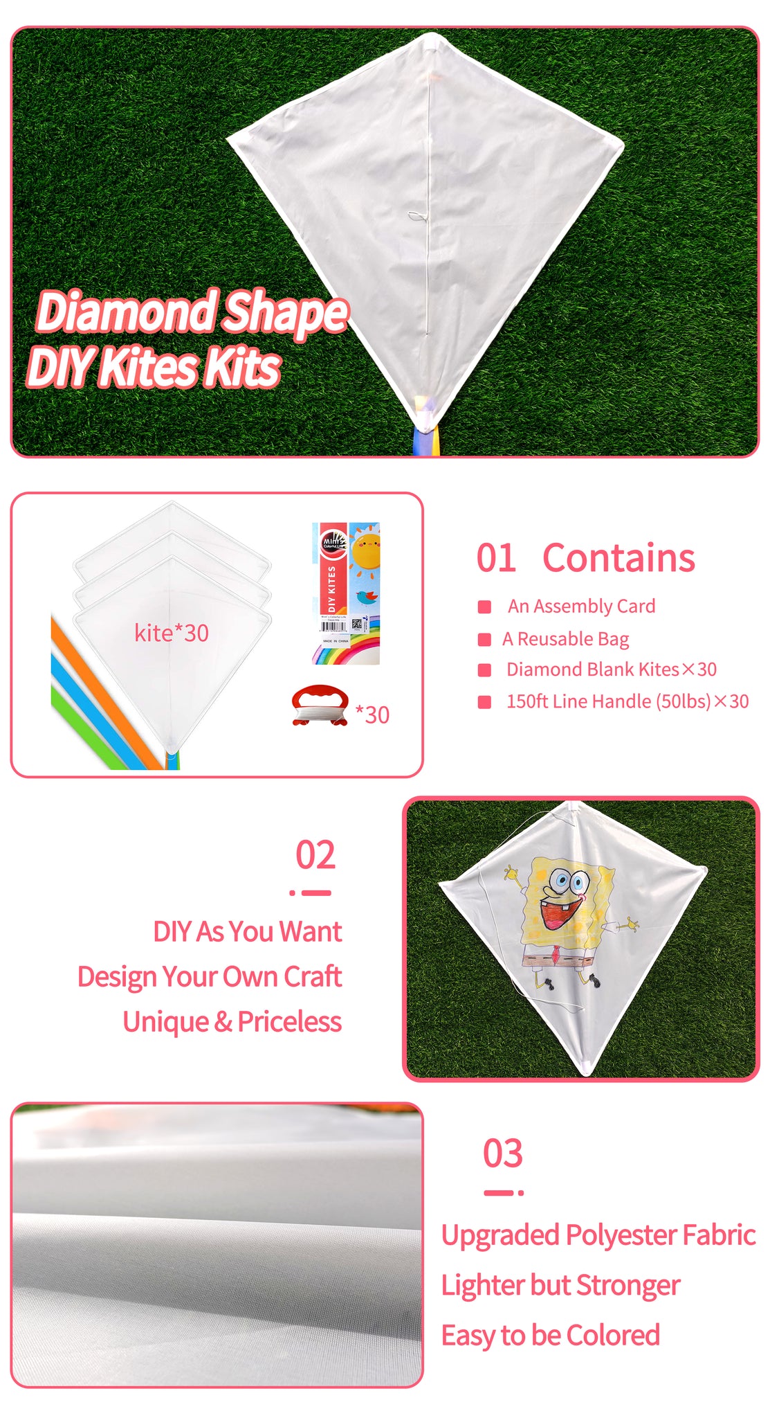 • DIY Kites for Kids. Absolutely a great idea and huge hit with the kids! 30 pack diamond kites, ready to be custom decorated. Drawing and coloring a craft, every kite kit is perfect for creating a unique piece of art.