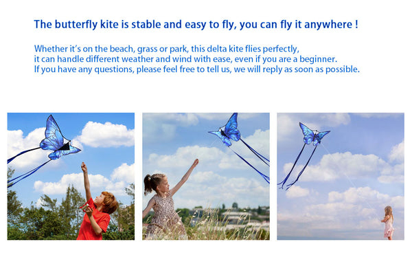 Kaiciuss Blue Butterfly Kite for Kids & Adults Easy to Fly