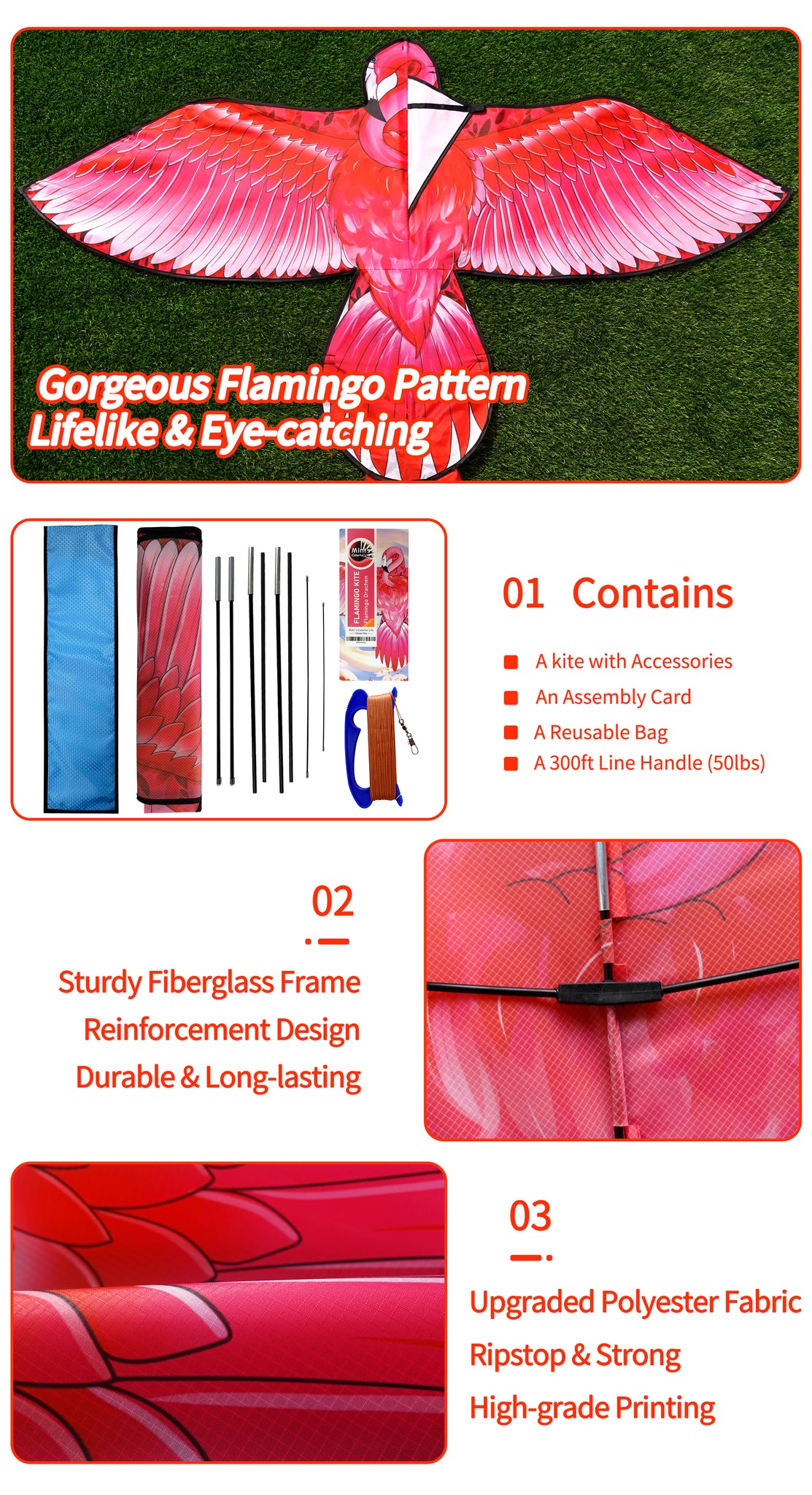 Rosa Drachen für Kinder und Erwachsene, einfach zu fliegender großer Flamingo-Drachen
