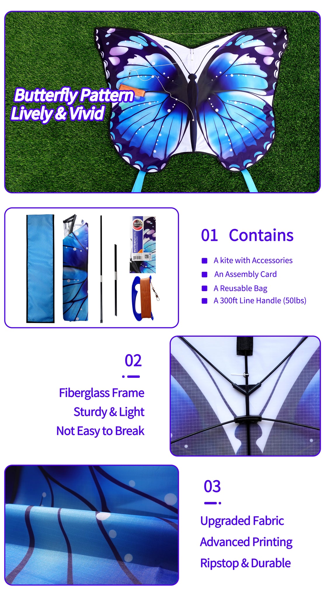 Easy to Fly and Assemble As we know, kite with butterfly shape is not as easy to fly and assemble as those delta or diamond kite. After update, it's easier to fly.